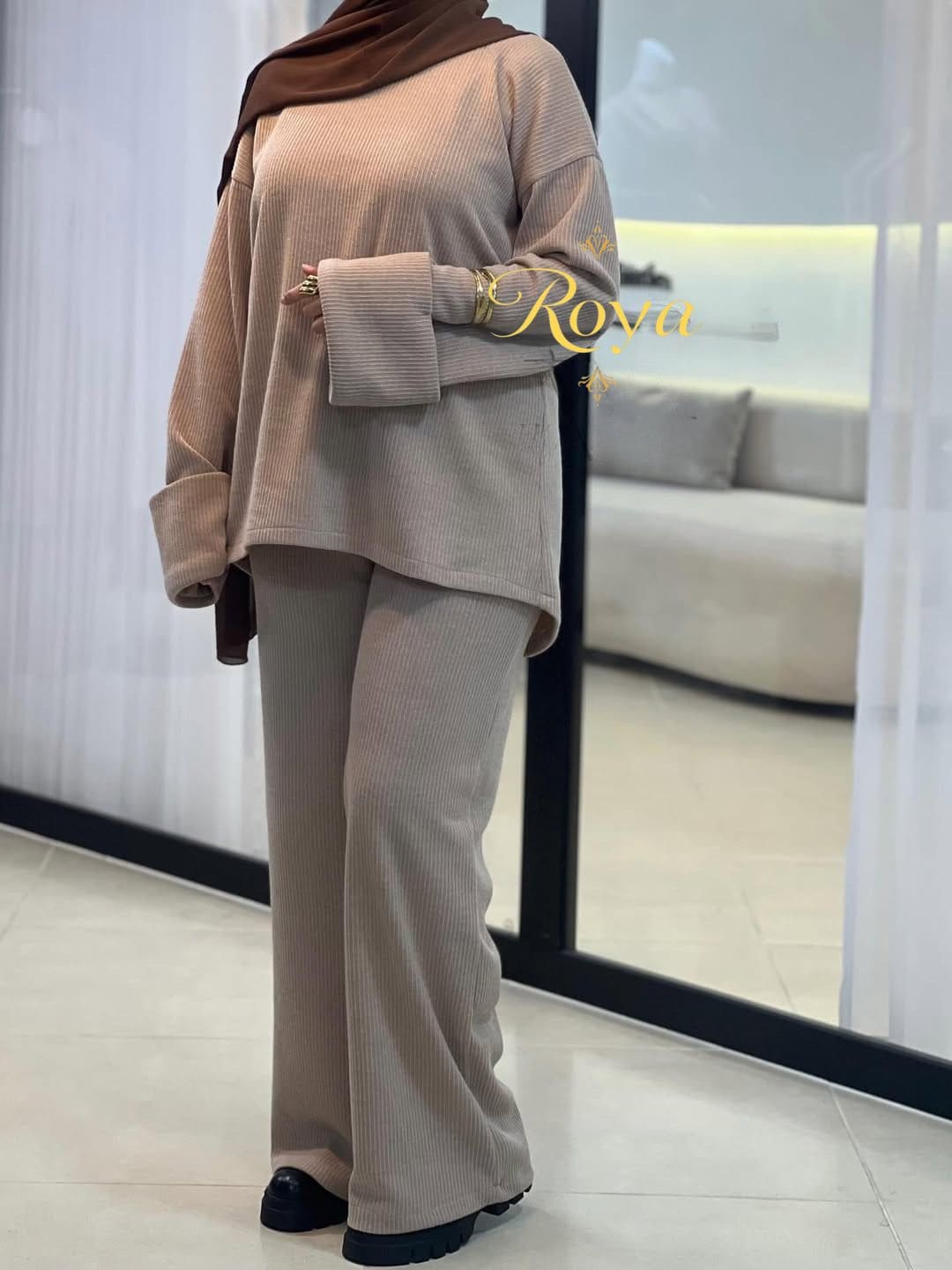 أنيق مكون من قطعتين (تونييك + سروال)، مصمم ليمنحكِ الدفء والمظهر الراقي في آن واحد